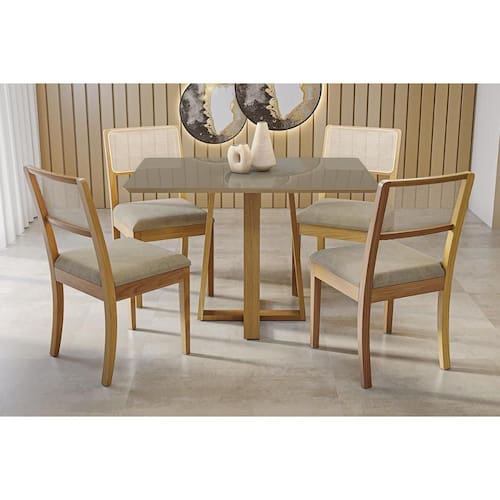 Sala de Jantar Completa Elma Premium Madeira Maciça c/ Tampo Madeirado c/ Vidro 120x80cm e 4 Cadeiras Lola Carvalho/Freijo Bronze - Boucle Bege Fendi - Kappesberg Abaixo segue os produtos do KIT: Sala de Jantar Completa Elma Premium Madeira Maciça c/ Tampo Madeirado c/ Vidro 120x80cm e 4 Cadeiras Lola Carvalho/Freijo Bronze - Boucle Bege Fendi - Kappesberg