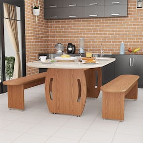 A Mesa 137 cm com Bancos Nature é a escolha ideal para quem busca praticidade, conforto e um visual moderno para a cozinha ou sala de jantar. Com design contemporâneo, ela combina o tampo em tom off white, que traz leveza e sofisticação ao ambiente, com a base e os bancos no padrão Nature, que remetem à madeira e deixam o espaço mais acolhedor. Seu formato funcional otimiza o espaço, sendo perfeita para ambientes compactos, sem abrir mão do conforto no dia a dia. Os bancos de 137 cm acompanham a mesa e oferecem excelente apoio, além de poderem ser facilmente encaixados sob o tampo quando não estão em uso, garantindo melhor circulação no ambiente.