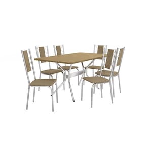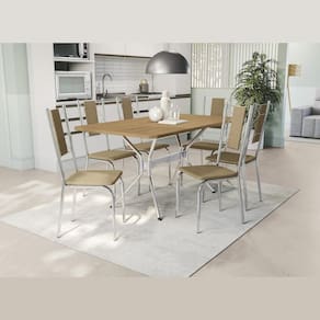 Combinação perfeita de estilo e funcionalidade com o Conjunto Sala de Jantar Crome da Kappesberg, composto por 6 cadeiras, 1 tampo de madeira e 1 base cromada. Suas 6 cadeiras na cor Capuccino em seu assento e Cromado na sua estrutura, adicionam elegância e sofisticação ao ambiente, se adaptando a qualquer decoração. Seu acabamento com 100% de polimento e 100% automatizado, garante durabilidade, resistência e padrão de qualidade excepcionais, além disso, seu assento conta com espuma de densidade 18, conforto prolongado. O tampo em madeira de alta qualidade, oferece espaço amplo para suas refeições. Sua base tubular Cromada, combina design moderno e resistência, suportando até 60 kg. Aproveite a qualidade que só a Kappesberg te oferece!