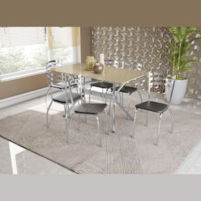 O Conjunto Sala de Jantar Linha Crome da Kappesberg combina elegância, conforto e qualidade, o conjunto ideal para horas de lazer! É composto por 1 mesa com Tampo de Vidro Temperado na cor Bronze, 1 base em Metal Cromado e 6 cadeiras com estrutura de Metal Cromado, garantindo um conjunto completo e moderno. As 6 cadeiras possuem assento com espuma de alta densidade, além disso, são 100% automatizados e acabado com 100% de polimento, proporcionando um alto padrão de qualidade, conforto e durabilidade. Seu estofamento na cor Preta, confere um visual elegante e moderno, tornando-o uma ótima escolha para qualquer sala de jantar. Aproveite a qualidade que o Conjunto da Kappesberg oferece!