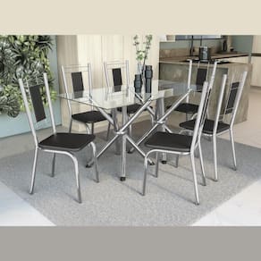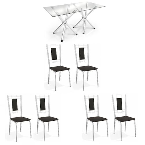 O Conjunto Sala de Jantar Linha Crome da Kappesberg combina elegância, conforto e qualidade, o conjunto ideal para horas de lazer! É composto por 1 mesa com Tampo de Vidro Temperado, 2 bases em Metal Cromado e 6 cadeiras com estrutura de Metal Cromado, garantindo um conjunto completo e moderno. As 6 cadeiras possuem assento com espuma de alta densidade, além disso, são 100% automatizados e acabado com 100% de polimento, proporcionando um alto padrão de qualidade, conforto e durabilidade. Seu estofamento na cor Preta, confere um visual elegante e moderno, tornando-o uma ótima escolha para qualquer sala de jantar. Aproveite a qualidade que o Conjunto da Kappesberg oferece!