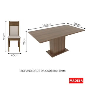 As cadeiras são em 100% MDF e possuem encosto de madeira e com o assento estofado em tecido. O tecido tem toque suave e a coloração foi pensada para harmoniza com qualquer decoração.