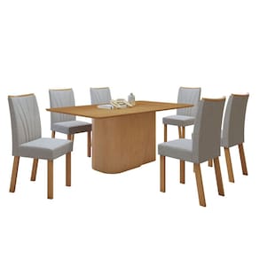 Conjunto Sala de Jantar Luar 170Cm Tampo No Glass com 6 Cadeiras Apogeu Amêndoa Clean/Linho Mosaico Cinza - Marrom