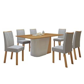 Conjunto Sala de Jantar Luar 170Cm Tampo No Glass com 6 Cadeiras Apogeu Amêndoa Clean/Off White/Amendoa Clean/Linho Mosaic - Marrom