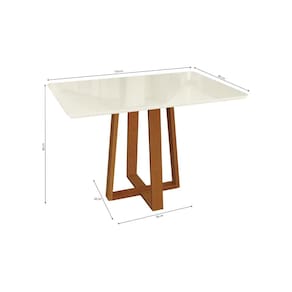 E quando combinada ao tampo retangular com vidro, acomoda quatro pessoas. Em MDF de 30mm, na cor off white, o destaque fica para o vidro na mesma cor, e medindo 120cm de largura e 80cm de profundidade, garante um acabamento único e moderno. Já as cadeiras que compõem o conjunto, quatro unidades no modelo Lara, também em madeira de eucalipto, são entregues montadas, ela é produzida em estrutura robusta, de madeira de eucalipto, garantindo resistência e durabilidade, e suportando até 120kg, deixará cada momento ainda mais especial.