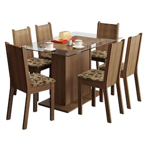 Conjunto Sala de Jantar Madesa Gales Mesa Tampo de Vidro com 6 Cadeiras - Marrom