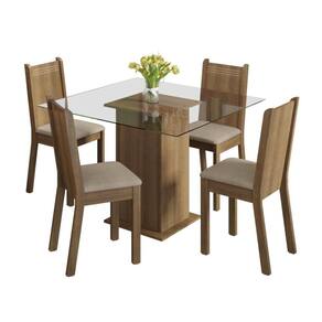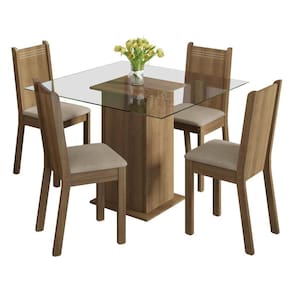 - Itens Incls: 1 mesa quadrada em pedestal com tampo de vidro e 4 cadeiras com assento estofado em tecido Pérola