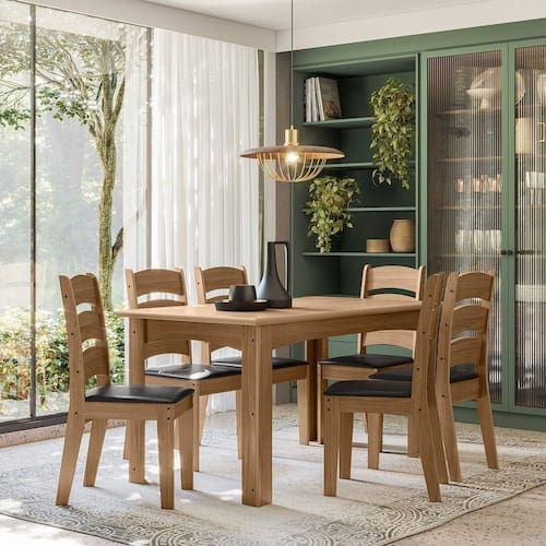 6 cadeiras (MDF/MDP) com assentos estofados.