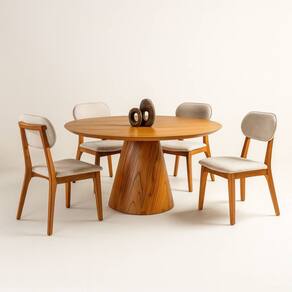 Conjunto Sala de Jantar 4 Lugares Marrocos Mesa Redonda 100 Laminado Madeira Macica Cinamomo