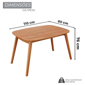A Sala de Jantar Ceci possui um design moderno e inovador, é o ideal para você que quer aliar resistência e praticidade no dia a dia. Complete a decoração de sua sala com a mesa de jantar com 4 cadeiras. Possui estrutura em madeira maciça e tampo de madeira laminada com canto arredondado, proporcionando design e segurança. Medida da Mesa (A x L x P): 76X110X80 Peso da Mesa: 16,8 kg Mesa suporta até: 30.0000 Acabamento da Cadeira/Banco: Verniz Natural Acabamento da Mesa: Verniz Ambiente Principal: Sala de Jantar Cadeira/Banco Estofada: Somente Assento Estofado Cadeira/Banco estofada: Somente Assento Estofado Cadeira/Banco suporta até: 120.0000 codigo_ean: 7900288002372 Complexidade da Montagem: Média: pode ser montado por mais de uma pessoa e/ou necessite de maior conhecimento para montagem Cor: Natural Cor do Produto: Natural Cor Secundária: Marrom De Canto (Canto Alemão): Não Escala de Brilho: Fosco Espessura do Tampo: 15 mm Formato do Tampo: Retangular Itens Inclusos: 1 Mesa + 4 Cadeiras + Manual De Montagem + Ferragens. Linha ou Coleção: Ceci Manual de Montagem e Instalação: https://product-hub-prd.madeiramadeira.com.br/962449/documents/ab6c9897-7748-43f1-862a-e7888d2e96ed2491774493817297785152569.pdf Marca: Yescasa Material da Base da Mesa: Madeira Maciça Material da Estrutura da Cadeira: Madeira Maciça Material do Tampo: MDF Medida da Cadeira/Banco (A x L x P): 82X47X58 Medida do Tampo (L x C x E): 110X80X1,5 Mesa Extensível: Não Necessita Montagem: Sim Origem do Produto: Nacional Peso da Cadeira/Banco: 6,675 kg Possui Apoio Para os Pés: Não Quantidade de Cadeiras: 4 Quantidade de Lugares: 04 Recomendações de Uso, Manutenção e Limpeza: Pano levemente umedecido e pano seco. Não utilizar produtos de limpeza Sistema de Montagem: Parafusos + Cavilhas e chave Allem Tipo de Madeira Maciça da Base da Mesa: Tauari