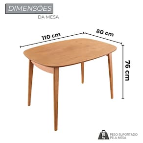 A Sala de Jantar Rubi possui um design moderno e inovador, é o ideal para você que quer aliar resistência e praticidade no dia a dia. Complete a decoração de sua sala com a mesa de jantar com 4 cadeiras. Possui estrutura em madeira maciça e tampo Laminado com canto arredondado, proporcionando design e segurança. Medida da Mesa (A x L x P): 76cmX110cmX80cm Peso da Mesa: 16,8 kg Mesa suporta até: 30 kg Acabamento da Cadeira/Banco: Verniz Natural Acabamento da Mesa: Verniz Ambiente Principal: Sala de Jantar Cadeira/Banco estofada: Somente Assento Estofado Cadeira/Banco suporta até: 120 kg Complexidade da Montagem: Média: pode ser montado por mais de uma pessoa e/ou necessite de maior conhecimento para montagem Cor: Naturalissimo/Sem Vidro/Laminado Cor do Produto: Naturalissimo/Sem Vidro/Laminado Cor Secundária: Marrom De Canto (Canto Alemão): Não Escala de Brilho: Fosco Espessura do Tampo: 15 mm Estrutura do Assento: MDF, espuma D-28, linho. Formato do Tampo: Retangular Itens Inclusos: 1 MESA, 4 CADEIRAS, MANUAL DE MONTAGEM E FERRAGENS. Linha ou Coleção: Ceci Manual de Montagem e Instalação: https://cdn2.madeiramadeira.com.br/atributo/tradicao-moveis/2062819-3528-17188194398794.pdf Material da Base da Mesa: Madeira Maciça Material da Estrutura da Cadeira: Madeira Maciça Material do Tampo: MDF Medida da Cadeira/Banco (A x L x P): 82cmX47cmX58cm Medida do Tampo (L x C x E): 110cmX80cmX1.5cm Mesa Extensível: Não Necessita Montagem: Sim Origem do Produto: Nacional Peso da Cadeira/Banco: 6,675 kg Possui Apoio Para os Pés: Não Quantidade de Lugares: 04 Recomendações de Uso, Manutenção e Limpeza: Pano levemente umedecido e pano seco. Não utilizar produtos de limpeza Sistema de Montagem: Parafusos + Cavilhas e chave Allem Tipo de Madeira Maciça da Base da Mesa: Tauari