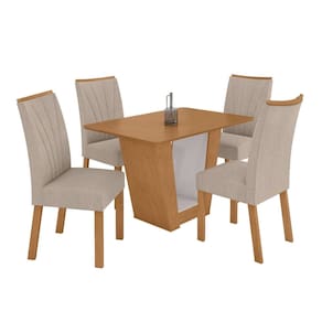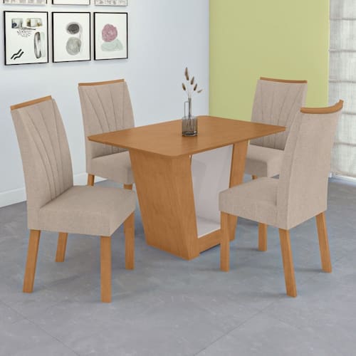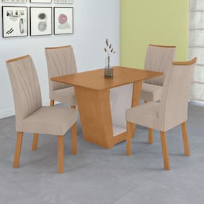 Conjunto Sala de Jantar Mesa 120cm Tampo Mdf no Glass 4 Cadeiras Apogeu Amêndoa/Off White/Bege - Marrom