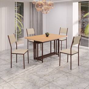 Este conjunto de mesa retangular e 4 cadeiras oferece estilo e praticidade. Com estrutura tubular em aço para estabilidade, o tampo em MDF cinamomo adiciona sofisticação e resistência a riscos e manchas. As cadeiras combinam harmoniosamente com a mesa, garantindo conforto com estofamento. Ideal para diversos espaços, é perfeito para receber convidados ou desfrutar de refeições em família, criando um ambiente acolhedor e elegante.