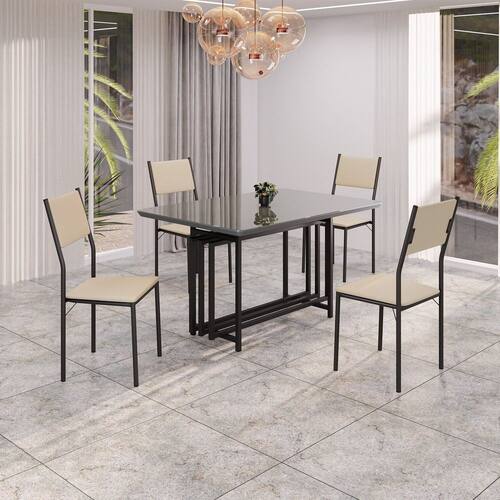 Este conjunto de mesa retangular e 4 cadeiras oferece estilo e praticidade. Com estrutura tubular em aço para estabilidade, o tampo em MDF Laca grafite com vidro adiciona sofisticação e resistência a riscos e manchas. As cadeiras combinam harmoniosamente com a mesa, garantindo conforto com estofamento. Ideal para diversos espaços, é perfeito para receber convidados ou desfrutar de refeições em família, criando um ambiente acolhedor e elegante.