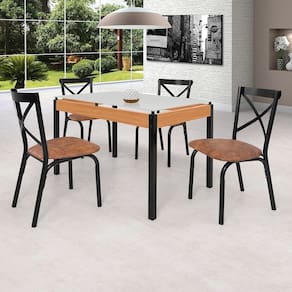 O conjunto de mesa Karina, é o conjunto ideal para sua cozinha, na cor preto fosco e com tampo de vidro de 120cm x 75cm, possui 4 cadeiras com desing moderno e anatômico, estofado em tecido linho ideal para seu ambiente. Medida da Mesa (A x L x P): 77cmx120cmx75cm Peso da Mesa: 28,71 kg Mesa suporta até: 10 kg Acabamento da Cadeira/Banco: Pintura Epóxi Acabamento da Mesa: Pintura Epóxi Almofada do assento: Removível Ambiente Principal: Cozinha Cadeira/Banco estofada: Sim Cadeira/Banco suporta até: 100 kg codigo_ean: 7900288209818 Complexidade da Montagem: Baixa: pode ser montado por uma pessoa sozinha Cor: Preto fosco / Caramelo Cor do Produto: Preto Fosco / Caramelo Enchimento do Assento: Espuma D-20 Escala de Brilho: Fosco Espessura do Tampo: 8 mm Itens Inclusos: 1 Mesa, 4 Cadeiras, Kit Ferragens e Manual de Montagem Linha ou Coleção: Karina Manual de Montagem e Instalação: https://product-hub-prd.madeiramadeira.com.br/454074881/documents/13bacae7-005c-4530-a281-7852dc14ec16b4ae0b8a43e3f8a71754509812.pdf Marca: Ciplafe Material da Base da Mesa: Madeira e ferro Material da Estrutura da Cadeira: Aço Carbono Material do Tampo: Vidro Medida da Cadeira/Banco (A x L x P): 90cmx50cmx53cm Medida do Tampo (L x C x E): 75cmx120cmx0,8cm Necessita Montagem: Sim Origem do Produto: Nacional Peso da Cadeira/Banco: 4,25 kg Possui Apoio Para os Pés: Não Quantidade de Cadeiras: 4 Quantidade de Lugares: 04 Recomendações de Uso, Manutenção e Limpeza: Limpar com pano levemente umedecido. Não usar produtos abrasivos que possam danificar a superfície do móvel. Revestimento da Cadeira/Banco: Courino Sistema de Montagem: Parafusos Vidro Temperado: Não