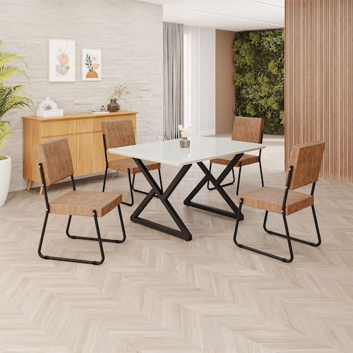 Este conjunto de mesa retangular e 4 cadeiras oferece estilo e praticidade. Com estrutura tubular em aço para estabilidade, o tampo em MDF Laca off white com vidro adiciona sofisticação e resistência a riscos e manchas. As cadeiras combinam harmoniosamente com a mesa, garantindo conforto com estofamento. Ideal para diversos espaços, é perfeito para receber convidados ou desfrutar de refeições em família, criando um ambiente acolhedor e elegante.