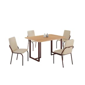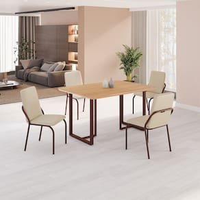 Este conjunto de mesa retangular e 4 cadeiras oferece estilo e praticidade. Com estrutura tubular em aço para estabilidade, o tampo em Mdf cinamomo adiciona sofisticação e resistência a riscos e manchas. As cadeiras combinam harmoniosamente com a mesa, garantindo conforto com estofamento. Ideal para diversos espaços, é perfeito para receber convidados ou desfrutar de refeições em família, criando um ambiente acolhedor e elegante. Medida da Mesa (A x L x P): 77cm x 120cm x 90cm Peso da Mesa: 20,5 kg Mesa suporta até: 10.0000 Acabamento da Cadeira/Banco: Pintura Texturizada Acabamento da Mesa: Pintura Texturizada Ambiente Principal: Sala de Jantar Cadeira/Banco estofada: Encosto e Assento Estofados Cadeira/Banco Estofada: Encosto e Assento Estofados Cadeira/Banco suporta até: 120.0000 codigo_ean: 7909903966396 Cor: Creme/Marrom Cor do Produto: Creme/Marrom De Canto (Canto Alemão): Não Enchimento do Assento: Espuma D-26 Escala de Brilho: Semi-Fosco Espessura do Tampo: 20 mm Formato do Tampo: Retangular Itens Inclusos: 1 Mesa, 4 Cadeiras, Manual De Montagem E Ferragens. Linha ou Coleção: Malibu Manual de Montagem e Instalação: https://product-hub-prd.madeiramadeira.com.br/955087/documents/eb3dd9ed-e16c-4c8b-9d90-aeffdec245c52174593493817220155058218.pdf Material da Base da Mesa: Aço Material da Estrutura da Cadeira: Aço Material do Tampo: MDF Medida da Cadeira/Banco (A x L x P): 88,8cm x 44cm x 51cm Medida do Tampo (L x C x E): 90cm x 120cm x 2cm Mesa Extensível: Não Necessita Montagem: Não Origem do Produto: Nacional Peso da Cadeira/Banco: 6,16 kg Possui Apoio Para os Pés: Não Quantidade de Lugares: 04 Recomendações de Uso, Manutenção e Limpeza: Usar um pano de tecido macio e seco, evitar detergentes, alvejantes e produtos químicos de limpeza; no tampo usar tecido macio levemente umedecido. Revestimento da Cadeira/Banco: Couro Ecológico