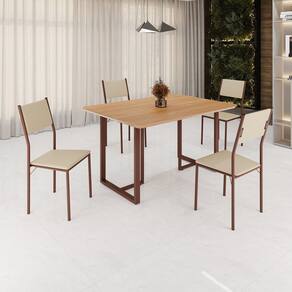 Este conjunto de mesa retangular e 4 cadeiras oferece estilo e praticidade. Com estrutura tubular em aço para estabilidade, o tampo em Mdf cinamomo adiciona sofisticação e resistência a riscos e manchas. As cadeiras combinam harmoniosamente com a mesa, garantindo conforto com estofamento. Ideal para diversos espaços, é perfeito para receber convidados ou desfrutar de refeições em família, criando um ambiente acolhedor e elegante.