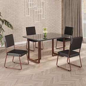 Este conjunto de mesa retangular e 4 cadeiras oferece estilo e praticidade. Com estrutura tubular em aço para estabilidade, o tampo em MDF Laca grafite com vidro adiciona sofisticação e resistência a riscos e manchas. As cadeiras combinam harmoniosamente com a mesa, garantindo conforto com estofamento. Ideal para diversos espaços, é perfeito para receber convidados ou desfrutar de refeições em família, criando um ambiente acolhedor e elegante. Medida da Mesa (A x L x P): 77,5cm x 120cm x 90cm Peso da Mesa: 37,2 kg Mesa suporta até: 10 kg Acabamento da Cadeira/Banco: Pintura Texturizada Acabamento da Mesa: Laca Ambiente Principal: Sala de Jantar Cadeira/Banco estofada: Encosto e Assento Estofados Cadeira/Banco suporta até: 120 kg Complexidade da Montagem: Baixa: pode ser montado por uma pessoa sozinha Cor: Preto / Marrom Cor do Produto: Preto / Marrom Cor Secundária: Preto De Canto (Canto Alemão): Não Enchimento do Assento: Espuma D-26 Escala de Brilho: Semi-Fosco Espessura do Tampo: 25 mm Estrutura do Assento: MDF, Eucalipto, espuma e Couro ecológico. Formato do Tampo: Retangular Itens Inclusos: 1 Mesa, 4 Cadeiras, Manual De Montagem E Ferragens. Linha ou Coleção: Napoli Manual de Montagem e Instalação: https://cdn2.madeiramadeira.com.br/atributo/moveis-teixeira/2170278-5246-17218529860483.pdf Material da Base da Mesa: Aço Material da Estrutura da Cadeira: Aço Material do Tampo: MDF/Vidro Medida da Cadeira/Banco (A x L x P): 94cm x 47,5cm x 59cm Medida do Tampo (L x C x E): 90cm x 120cm x 2,5cm Mesa Extensível: Não Necessita Montagem: Sim Origem do Produto: Nacional Peso da Cadeira/Banco: 7,06 kg Possui Apoio Para os Pés: Não Quantidade de Lugares: 04 Recomendações de Uso, Manutenção e Limpeza: Usar um pano de tecido macio e seco, evitar detergentes, alvejantes e produtos químicos de limpeza; no tampo usar tecido macio levemente umedecido. Revestimento da Cadeira/Banco: Couro Ecológico Sistema de Montagem: PARAFUSOS