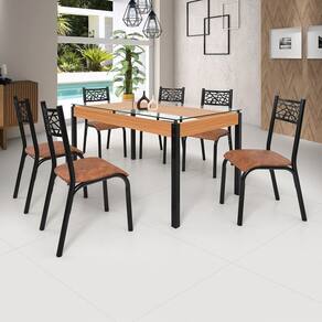 O conjunto de mesa Jade, é o conjunto ideal para sua cozinha, na cor preto fosco e com tampo de vidro 140cm x 80cm, possui 6 cadeiras com desing moderno e anatômico, estofado em tecido linho ideal para seu ambiente. Medida da Mesa (A x L x P): 77cmx140cmx80cm Peso da Mesa: 34,73 kg Mesa suporta até: 10 kg Acabamento da Cadeira/Banco: Pintura Epóxi Acabamento da Mesa: Pintura Epóxi Almofada do assento: Removível Ambiente Principal: Cozinha Cadeira/Banco estofada: Sim Cadeira/Banco suporta até: 100 kg codigo_ean: 7900288210135 Complexidade da Montagem: Baixa: pode ser montado por uma pessoa sozinha Cor: Preto fosco / Caramelo Cor do Produto: Preto Fosco / Caramelo Enchimento do Assento: Espuma D-14 Escala de Brilho: Fosco Espessura do Tampo: 8 mm Itens Inclusos: 1 Mesa, 6 Cadeiras, Kit Ferragens e Manual de Montagem Linha ou Coleção: Jade Manual de Montagem e Instalação: https://product-hub-prd.madeiramadeira.com.br/615465141/documents/70a9c1fd-1e82-482d-9218-24f243f679a6b4ae0b8a43e3f8a71754508474.pdf Marca: Ciplafe Material da Base da Mesa: Madeira e ferro Material da Estrutura da Cadeira: Aço Carbono Material do Tampo: Vidro Medida da Cadeira/Banco (A x L x P): 91cmx37cmx49cm Medida do Tampo (L x C x E): 80cmx140cmx0,8cm Necessita Montagem: Sim Origem do Produto: Nacional Peso da Cadeira/Banco: 3,65 kg Possui Apoio Para os Pés: Não Quantidade de Cadeiras: 6 Quantidade de Lugares: 06 Recomendações de Uso, Manutenção e Limpeza: Limpar com pano levemente umedecido. Não usar produtos abrasivos que possam danificar a superfície do móvel. Revestimento da Cadeira/Banco: Courino Sistema de Montagem: Parafusos Vidro Temperado: Não