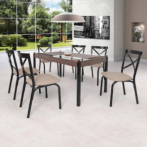 O conjunto de mesa Karina, é o conjunto ideal para sua cozinha, na cor preto fosco e com tampo de vidro 1,4M X 0,80M, possui 6 cadeiras com desing moderno e anatômico, estofado em tecido linho ideal para seu ambiente. Medida da Mesa (A x L x P): 77x80x140cm Peso da Mesa: 34,73 kg Mesa suporta até: 10.0000 Acabamento da Cadeira/Banco: Pintura Epóxi Acabamento da Mesa: Pintura Epóxi Almofada do assento: Removível Ambiente Principal: Cozinha Cadeira/Banco estofada: Sim Cadeira/Banco suporta até: 100.0000 codigo_ean: 7909903451786 Complexidade da Montagem: Baixa: pode ser montado por uma pessoa sozinha Cor: Preto/Bege Cor do Produto: Preto/Bege Enchimento do Assento: Espuma D-20 Escala de Brilho: Fosco Espessura do Tampo: 8 mm Estrutura do Assento: Madeira Estrutura do Encosto: Aço Itens Inclusos: 1 Mesa, 6 Cadeiras, Kit Ferragens e Manual de Montagem Linha ou Coleção: Clássica Manual de Montagem e Instalação: https://product-hub-prd.madeiramadeira.com.br/832206/documents/5aa6af6f-a60a-4cf9-b270-211eb54103781209174142karina.pdf Material da Base da Mesa: Aço Material da Estrutura da Cadeira: Aço Carbono Material do Tampo: Vidro Medida da Cadeira/Banco (A x L x P): 90x50x53cm Medida do Tampo (L x C x E): 80x140x0,8cm Necessita Montagem: Sim Origem do Produto: Nacional Peso da Cadeira/Banco: 5,92 kg Possui Apoio Para os Pés: Não Quantidade de Cadeiras: 6 Quantidade de Lugares: 06 Recomendações de Uso, Manutenção e Limpeza: Limpar com pano levemente umedecido. Não usar produtos abrasivos que possam danificar a superfície do móvel. Revestimento da Cadeira/Banco: Couro Ecológico Sistema de Montagem: Parafusos Vidro Temperado: Não Ean: 7909903451786