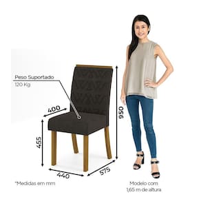 Características das Cadeiras: Escala Brilho Cadeira: Fosco Quantidade Lugares: 06 Lugares Medida Cadeira (A xL xP): 95cmx44cmx57,5 cm Peso Suportado por Cadeira: 120Kg Estrutura Assento: MDP/MDF Altura Assento até o chão: 45,5cm Revestimento Assento: Suede Enchimento Assento: Espuma D23 Almofada Assento: Fixa Tipo Assento: Fixo Estrutura Encosto: MDP/MDF Revestimento Encosto: Suede Enchimento Encosto: Espuma D15 Tipo Encosto: Fixo Possui Rodízio: Não