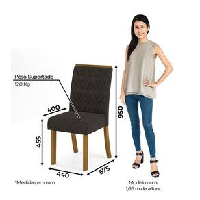 Características das Cadeiras: Escala Brilho Cadeira: Fosco Quantidade Lugares: 06 Lugares Medida Cadeira (A xL xP): 95cmx44cmx57,5 cm Peso Suportado por Cadeira: 120Kg Estrutura Assento: MDP/MDF Altura Assento até o chão: 45,5cm Revestimento Assento: Suede Enchimento Assento: Espuma D23 Almofada Assento: Fixa Tipo Assento: Fixo Estrutura Encosto: MDP/MDF Revestimento Encosto: Suede Enchimento Encosto: Espuma D15 Tipo Encosto: Fixo Possui Rodízio: Não