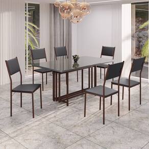 Este conjunto de mesa retangular e 6 cadeiras oferece estilo e praticidade. Com estrutura tubular em aço para estabilidade, o tampo em MDF Laca grafite com vidro adiciona sofisticação e resistência a riscos e manchas. As cadeiras combinam harmoniosamente com a mesa, garantindo conforto com estofamento. Ideal para diversos espaços, é perfeito para receber convidados ou desfrutar de refeições em família, criando um ambiente acolhedor e elegante.