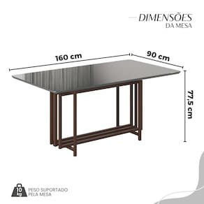Medida da Mesa (A x L x P): 77,5cm x 160cm x 90cm