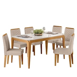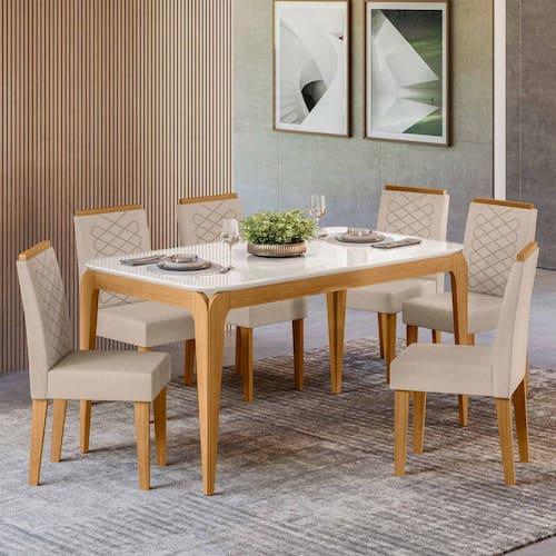 Conjunto Sala de Jantar Mesa 1,60m com 6 Cadeiras Aurea Ypê/Off White/Al10 - New Ceval