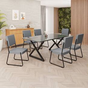 Este conjunto de mesa retangular e 6 cadeiras oferece estilo e praticidade. Com estrutura tubular em aço para estabilidade, o tampo em MDF Laca grafite com vidro adiciona sofisticação e resistência a riscos e manchas. As cadeiras combinam harmoniosamente com a mesa, garantindo conforto com estofamento. Ideal para diversos espaços, é perfeito para receber convidados ou desfrutar de refeições em família, criando um ambiente acolhedor e elegante.