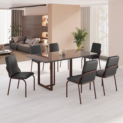 Este conjunto de mesa retangular e 6 cadeiras oferece estilo e praticidade. Com estrutura tubular em aço para estabilidade, o tampo em MDF Laca grafite com vidro adiciona sofisticação e resistência a riscos e manchas. As cadeiras combinam harmoniosamente com a mesa, garantindo conforto com estofamento. Ideal para diversos espaços, é perfeito para receber convidados ou desfrutar de refeições em família, criando um ambiente acolhedor e elegante.