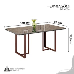 Medida da Mesa (A x L x P): 77,5cm x 160cm x 90cm