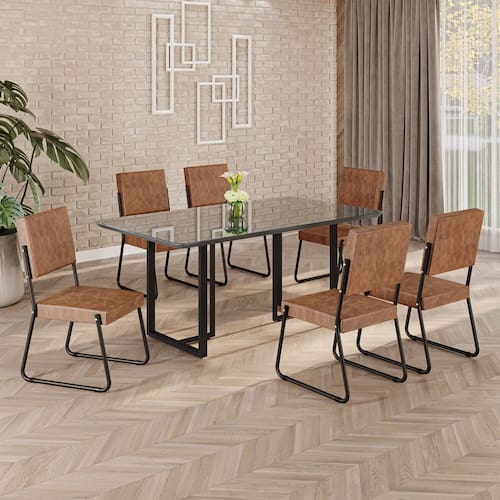 Este conjunto de mesa retangular e 6 cadeiras oferece estilo e praticidade. Com estrutura tubular em aço para estabilidade, o tampo em MDF Laca grafite com vidro adiciona sofisticação e resistência a riscos e manchas. As cadeiras combinam harmoniosamente com a mesa, garantindo conforto com estofamento. Ideal para diversos espaços, é perfeito para receber convidados ou desfrutar de refeições em família, criando um ambiente acolhedor e elegante.