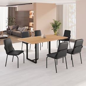 Este conjunto de mesa retangular e 6 cadeiras oferece estilo e praticidade. Com estrutura tubular em aço para estabilidade, o tampo em MDF cinamomo adiciona sofisticação e resistência a riscos e manchas. As cadeiras combinam harmoniosamente com a mesa, garantindo conforto com estofamento. Ideal para diversos espaços, é perfeito para receber convidados ou desfrutar de refeições em família, criando um ambiente acolhedor e elegante. Medida da Mesa (A x L x P): 77cm x 160cm x 90cm Peso da Mesa: 24,8 kg Mesa suporta até: 10 kg Acabamento da Cadeira/Banco: Pintura Texturizada Acabamento da Mesa: Melamínico Ambiente Principal: Sala de Jantar Cadeira/Banco estofada: Encosto e Assento Estofados Cadeira/Banco suporta até: 120 kg Complexidade da Montagem: Baixa: pode ser montado por uma pessoa sozinha Cor: Preto Cor do Produto: Preto Cor Secundária: Preto De Canto (Canto Alemão): Não Enchimento do Assento: Espuma D-26 Escala de Brilho: Semi-Fosco Espessura do Tampo: 20 mm Estrutura do Assento: MDP de 15mm, espuma 1,2mm, courino. Formato do Tampo: Retangular Itens Inclusos: 1 MESA, 6 CADEIRAS, MANUAL DE MONTAGEM E FERRAGENS. Linha ou Coleção: Malibu Manual de Montagem e Instalação: https://cdn2.madeiramadeira.com.br/atributo/moveis-teixeira/2175525-4938-1722019589267.pdf Material da Base da Mesa: Aço Material da Estrutura da Cadeira: Aço Material do Tampo: MDF Medida da Cadeira/Banco (A x L x P): 88,8cm x 44cm x 51cm Medida do Tampo (L x C x E): 90cm x 160cm x 2cm Mesa Extensível: Não Necessita Montagem: Sim Origem do Produto: Nacional Peso da Cadeira/Banco: 6,16 kg Possui Apoio Para os Pés: Não Quantidade de Lugares: 06 Recomendações de Uso, Manutenção e Limpeza: Usar um pano de tecido macio e seco, evitar detergentes, alvejantes e produtos químicos de limpeza; no tampo usar tecido macio levemente umedecido. Revestimento da Cadeira/Banco: Couro Ecológico Sistema de Montagem: PARAFUSOS