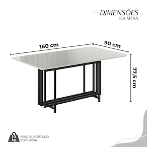Medida da Mesa (A x L x P): 77,5cm x 160cm x 90cm