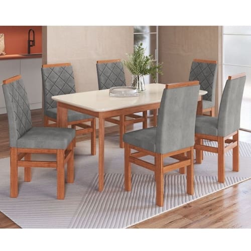 Este belíssima Conjunto de sala de Jantar Marselha com a mesa e cadeira da Dobuê Movelaria ele facilita o seu dia a dia, pois foi produzida com material resistente e fácil de limpar. E seu acabamento com sete camadas de proteção que deixa mais resistente, tampo revestido com verniz Vitreo de alto brilho e alta resistência ao calor.
