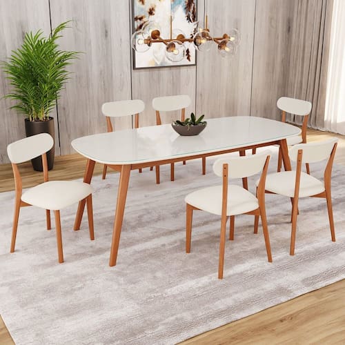 Complete a decoração de sua sala com a mesa de jantar com 6 cadeiras. Possui estrutura em madeira maciça e tampo de vidro laqueado com canto arredondado, proporcionando design e segurança. Medida da Mesa (A x L x P): 76X180X80 Peso da Mesa: 33 kg Mesa suporta até: 30.0000 Acabamento da Cadeira/Banco: Verniz Natural Acabamento da Mesa: Verniz Ambiente Principal: Sala de Jantar Cadeira/Banco estofada: Encosto e Assento Estofados Cadeira/Banco Estofada: Encosto e Assento Estofados Cadeira/Banco suporta até: 120.0000 codigo_ean: 7900288012135 Complexidade da Montagem: Média: pode ser montado por mais de uma pessoa e/ou necessite de maior conhecimento para montagem Cor: Natural/Off White Cor do Produto: Natural/Off White Cor Secundária: Branco De Canto (Canto Alemão): Não Enchimento do Assento: Espuma D-26 Escala de Brilho: Fosco Espessura do Tampo: 15 mm Formato do Tampo: Retangular Itens Inclusos: 1 Mesa, 6 Cadeiras + Manual De Montagem + Ferragens. Linha ou Coleção: Ceci Manual de Montagem e Instalação: https://product-hub-prd.madeiramadeira.com.br/966361/documents/3bb7a1ae-455b-4128-940d-2ae692015d742512208493817302179910487.pdf Marca: Yescasa Material da Base da Mesa: Madeira Maciça Material da Estrutura da Cadeira: Madeira Maciça Material do Tampo: Vidro/MDF Medida da Cadeira/Banco (A x L x P): 82X47X58 Medida do Tampo (L x C x E): 180X80X1,5 Mesa Extensível: Não Necessita Montagem: Sim Origem do Produto: Nacional Peso da Cadeira/Banco: 6,675 kg Possui Apoio Para os Pés: Não Quantidade de Cadeiras: 6 Quantidade de Lugares: 06 Recomendações de Uso, Manutenção e Limpeza: Pano levemente umedecido e pano seco. Não utilizar produtos de limpeza Revestimento da Cadeira/Banco: Linho Sistema de Montagem: Parafusos + Cavilhas e chave Allem Tipo de Madeira Maciça da Base da Mesa: Tauari