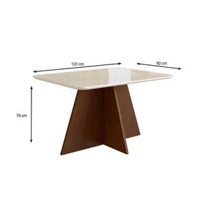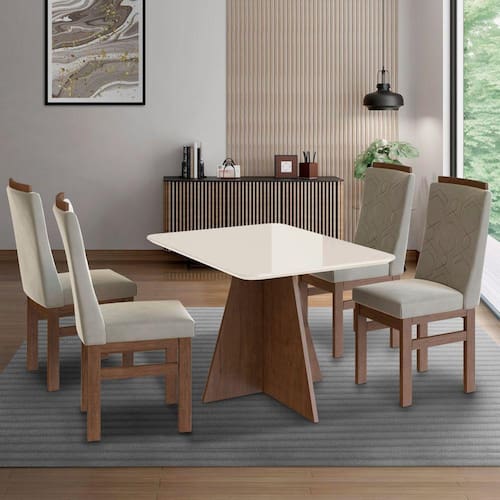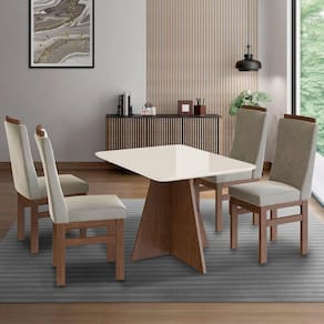 Conjunto Sala de Jantar Mesa 90x120cm T Vidro com 4 Cadeiras Madeira Maciça Canela/Off White/Creme - Marrom