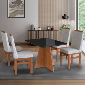 Mesas e Cadeiras são indispensáveis para o funcionamento da casa e é no cômodo de confraternização que elas ganham protagonismo. Composto por peças de muito charme, o conjunto de Mesa e Cadeiras ref:150/26 produzida em madeira maciça orna o uso desse móvel importante com mesas para 4 lugares para garantir uma usabilidade plena para o seu dia a dia. Ideal para cozinhas e salas de jantar, o kit oferece amplo espaço para que você possa dispor pratos, copos, talheres e até uma travessa com o quitute da vez, enquanto acomoda os convidados com aconchego e receptividade. Ah, para completar, é só combiná-la com o restante da mobília de sua preferência e criar o ambiente intimista perfeito para a sua rotina ou reuniões entre amigos. Medida da Mesa (A x L x P): 120x90x80 Peso da Mesa: 40 Mesa suporta até: 80 Acabamento da Cadeira/Banco: Pintura UV Acabamento da Mesa: Pintura UV Acompanha Manual de Instalação: Sim Almofada do assento: Fixa Almofada do encosto: Fixa Altura do Conjunto: 80 Ambiente Principal: Sala de Jantar Cadeira/Banco estofada: Encosto e Assento Estofados Cadeira/Banco suporta até: 120 Complexidade da Montagem: Baixa: pode ser montado por uma pessoa sozinha Cor: Cenela/Preto/Cinza Cor da Base: Marrom Cor do Produto: Cenela/Preto/Cinza Cor do Tampo: Preto Cor Flex: Cenela/Preto/Cinza Cor Secundária: Cinza De Canto (Canto Alemão): Não Design da Base: Trapézio Enchimento do Assento: Espuma D-23 Enchimento do Encosto: Espuma D-14 Escala de Brilho: Semi-Brilho Espessura do Tampo: 30 Espessura do Vidro: mm Estrutura do Assento: HDF 12 Estrutura do Encosto: HDF 4 Formato do Tampo: Retangular Informações Complementares: Conjunto mesa com 4 cadeiras madeira maciça Itens Inclusos: 01 Tampo, 01 Base, 4 Cadeiras, Kit Ferragens, 01 Manual Linha ou Coleção: 2024 Manual de Especificação Técnica: https://product-hub-prd.madeiramadeira.com.br/883065/documents/fafea3cd-99b7-4cce-9fee-fbb4a0280bce1700426cadeira26.pdf Manual de Montagem e Instalação: https://product-hub-prd.madeiramadeira.com.br/883065/documents/e3943dde-a2ec-477f-8883-6b150a868ec61700425manualref150.pdf Material da Base da Mesa: MDP Material da Estrutura da Cadeira: Madeira Maciça Material do Tampo: Vidro/MDF Material Principal: Vidro/MDP/MDF/Madeira Maciça Material Principal das Cadeiras/Bancos: Madeira Maciça Medida da Base (A x L x P): 75X67X41 CM Medida da Cadeira/Banco (A x L x P): 104X44X48 Medida do Tampo (L x C x E): 120X90X3 Mesa Dobrável: Não Mesa Extensível: Não Montagem Flex: Apenas conforme segue manual Necessita Montagem: Sim Origem do Produto: Nacional Peso da Cadeira/Banco: 9 Possui Apoio para Braços: Não Possui Apoio Para os Pés: Não Possui Prateleiras: Não Possui Rodízio: Não Possui Suporte Giratório: Não Possui Vidro: Sim Quantidade de Cadeiras: 4 Quantidade de Lugares: 04 Recomendações de Uso, Manutenção e Limpeza: Limpeza com pano macio e levemente umedecido Revestimento da Cadeira/Banco: Suede Sistema de Montagem: Parafusos, Cantoneiras, Tapa Furo e Cola Tipo de Assento: Fixo Tipo de Encosto: Estofado Vidro Temperado: Não
