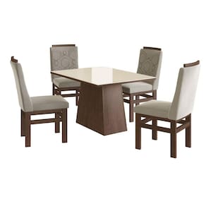 Mesas e Cadeiras são indispensáveis para o funcionamento da casa e é no cômodo de confraternização que elas ganham protagonismo. Composto por peças de muito charme, o conjunto de Mesa e Cadeiras ref:144/26 produzida em madeira maciça orna o uso desse móvel importante com mesas para 4 lugares para garantir uma usabilidade plena para o seu dia a dia. Ideal para cozinhas e salas de jantar, o kit oferece amplo espaço para que você possa dispor pratos, copos, talheres e até uma travessa com o quitute da vez, enquanto acomoda os convidados com aconchego e receptividade. Ah, para completar, é só combiná-la com o restante da mobília de sua preferência e criar o ambiente intimista perfeito para a sua rotina ou reuniões entre amigos. Medida da Mesa (A x L x P): 80x120x90cm Peso da Mesa: 40 Mesa suporta até: 100 Acabamento da Cadeira/Banco: Pintura UV Acabamento da Mesa: Pintura UV Almofada do assento: Fixa Altura do Conjunto: 106 cm Ambiente Principal: Sala de Jantar Apoio para Braços Estofado: Cadeira/Banco estofada: Encosto e Assento Estofados Cadeira/Banco suporta até: 120 Complexidade da Montagem: Média: pode ser montado por mais de uma pessoa e/ou necessite de maior conhecimento para montagem Cor: Marrom/Off White Cor da Base: Marrom Cor do Produto: Marrom/Off White Cor do Tampo: Bege Cor Flex: Cor Marrom Com Tecido Joli Marrom Cor Secundária: Marrom De Canto (Canto Alemão): Não Design da Base: Trapézio Enchimento do Assento: Espuma D-23 Enchimento do Encosto: Espuma D-14 Escala de Brilho: Semi-Brilho Espessura do Tampo: 29 Espessura do Vidro: mm Estrutura do Assento: HDF Estrutura do Encosto: HDF Formato do Tampo: Retangular Informações Complementares: Mesa Para Sala de Jantar Com Vidro Lapidado Off White, Com 4 Cadeiras de Madeira Maciça Reflorestada Itens Inclusos: 1 Mesa, 4 Cadeiras, Kit Ferragens e Manual de Montagem Linha ou Coleção: 2022 Manual de Especificação Técnica: https://cdn2.madeiramadeira.com.br/atributo/mOveis-zamarchi/1028382-manual-mesa-e-cadeira.pdf Manual de Montagem e Instalação: https://cdn2.madeiramadeira.com.br/atributo/mOveis-zamarchi/1028383-manual-mesa-e-cadeira.pdf Material da Base da Mesa: MDP Material da Estrutura da Cadeira: Madeira Maciça Material do Tampo: Vidro/MDP Medida da Base (A x L x P): 75x67x41cm Medida da Cadeira/Banco (A x L x P): 106x45x49cm Medida do Canto Alemão (A x L x P): Medida do Suporte Giratório (L x C x E): Medida do Tampo (L x C x E): 120x90x2,9cm Mesa Extensível: Não Montagem Flex: Apenas Opção Do Manual Necessita Montagem: Sim Origem do Produto: Nacional Peso da Cadeira/Banco: 9 Possui Apoio para Braços: Não Possui Apoio Para os Pés: Sim Possui Suporte Giratório: Não Quantidade de Lugares: 04 Recomendações de Uso, Manutenção e Limpeza: Limpeza com pano macio e levemente umedecido Revestimento da Cadeira/Banco: Suede Sistema de Montagem: Parafusos, Cantoneiras, Tapa Furo e Cola Tipo de Madeira Maciça da Base da Mesa: Tipo de Madeira Maciça do Tampo: Vidro Temperado: Não