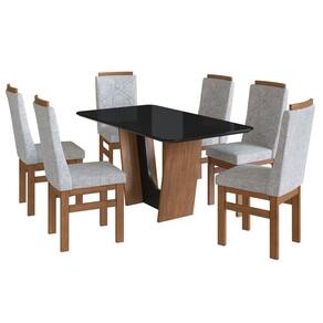 Conjunto Sala de Jantar Mesa 90x160cm T Vidro com 6 Cadeiras Madeira Maciça Tecido Joli Canela/ Cinza/ Preto - Marrom