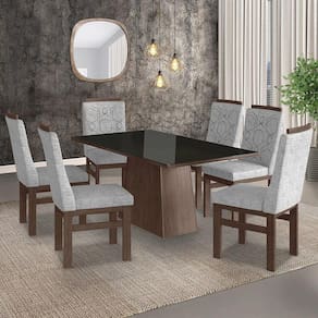 Mesas e Cadeiras são indispensáveis para o funcionamento da casa e é no cômodo de confraternização que elas ganham protagonismo. Composto por peças de muito charme, o conjunto de Mesa e Cadeiras ref:140/26 produzida em madeira maciça orna o uso desse móvel importante com mesas para 4 e 6 lugares para garantir uma usabilidade plena para o seu dia a dia. Ideal para cozinhas e salas de jantar, o kit oferece amplo espaço para que você possa dispor pratos, copos, talheres e até uma travessa com o quitute da vez, enquanto acomoda os convidados com aconchego e receptividade. Ah, para completar, é só combiná-la com o restante da mobília de sua preferência e criar o ambiente intimista perfeito para a sua rotina ou reuniões entre amigos. Medida da Mesa (A x L x P): 80x160x90cm Peso da Mesa: 48 kg Mesa suporta até: 100.0000 Acabamento da Cadeira/Banco: Pintura UV Acabamento da Mesa: Pintura UV Almofada do assento: Fixa Altura do Conjunto: 106 Ambiente Principal: Sala de Jantar Cadeira/Banco Estofada: Encosto e Assento Estofados Cadeira/Banco estofada: Encosto e Assento Estofados Cadeira/Banco suporta até: 120.0000 codigo_ean: 7909903125380 Complexidade da Montagem: Média: pode ser montado por mais de uma pessoa e/ou necessite de maior conhecimento para montagem Cor: Marrom/Preto Cor da Base: Marrom Cor do Produto: Marrom/Preto Cor do Tampo: Preto Cor Flex: Cor Marrom Com Tecido Linho Cor Secundária: Cinza De Canto (Canto Alemão): Não Enchimento do Assento: Espuma D-23 Enchimento do Encosto: Espuma D-14 Escala de Brilho: Semi-Brilho Espessura do Tampo: 29 mm Formato do Tampo: Retangular Informações Complementares: Mesa Para Sala de Jantar Com Vidro Lapidado Preto, Com 6 Cadeiras de Madeira Maciça Reflorestada Itens Inclusos: 1 Mesa, 6 Cadeiras, Kit Ferragens e Manual de Montagem Linha ou Coleção: 2022 Manual de Especificação Técnica: https://product-hub-prd.madeiramadeira.com.br/790494/documents/bb70ab03-04cc-401e-b65f-3b0a8f299b981023009manualmesaecadeira.pdf Manual de Montagem e Instalação: https://product-hub-prd.madeiramadeira.com.br/790494/documents/93f6fe4e-ed2f-4851-b6cb-f8c9fa1cd4411023010manualmesaecadeira.pdf Manutenção: Limpeza com pano macio e levemente umedecido Material da Base da Mesa: MDP Material da Estrutura da Cadeira: Madeira Maciça Material do Tampo: Vidro/MDP Medida da Base (A x L x P): 75x67x41cm Medida da Cadeira/Banco (A x L x P): 106x45x49cm Medida do Tampo (L x C x E): 160x90x2,9cm Mesa Extensível: Não Montagem Flex: Apenas Opção do Manual Necessita Montagem: Sim Origem do Produto: Nacional Peso da Cadeira/Banco: 9 kg Possui Apoio para Braços: Não Possui Apoio Para os Pés: Sim Possui Suporte Giratório: Não Quantidade de Cadeiras: 6 Quantidade de Lugares: 06 Recomendações de Uso, Manutenção e Limpeza: Limpeza com pano macio e levemente umedecido Revestimento da Cadeira/Banco: Linho Sistema de Montagem: Parafusos, Cantoneiras, Tapa Furo e Cola Vidro Temperado: Não Ean: 7909903125380