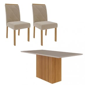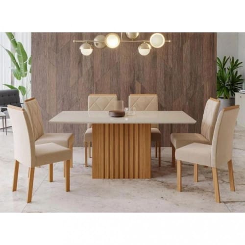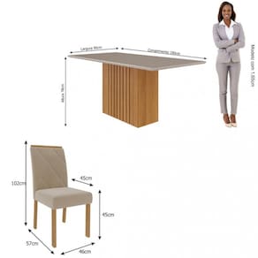 A Sala de Jantar Ana com 1,80x0,90 metros e 6 cadeiras Fernanda é a escolha ideal para reunir a família em momentos especiais. A mesa Ana, com base quadrada e tampo de MDF/vidro com bordas chanfradas, oferece um design sofisticado e acabamento em laca. As cadeiras Fernanda combinam elegância, conforto e funcionalidade, com estrutura de madeira que garante durabilidade e um toque rústico. O estofamento de alta qualidade assegura conforto, enquanto o sistema de fácil montagem das cadeiras torna a experiência ainda mais conveniente.