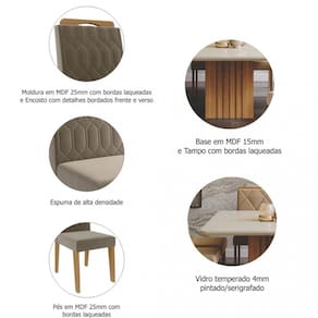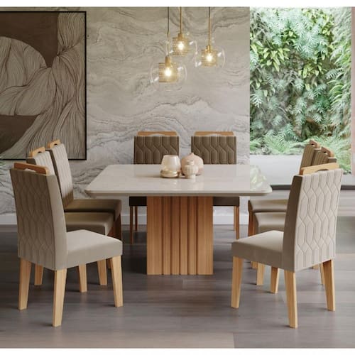 Conjunto Sala de Jantar Mesa Ana 8 Cadeira Paola Cimol - Bege
