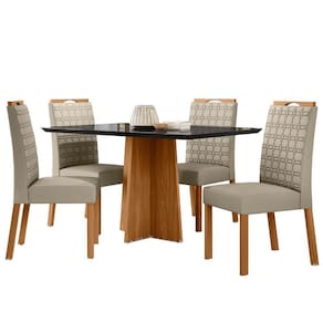 1 Mesa (Tampo + Base/Pés), 4 Cadeiras, kit ferragem e Manual para Montagem.