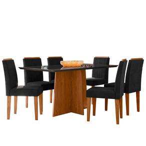 Conjunto Sala de Jantar Mesa Anitta 1,60m Tampo Mdf e Vidro com 6 Cadeiras Ana Ypê/Preto/Ja03 - New Ceval