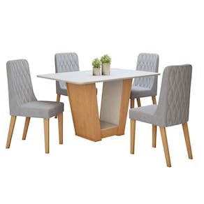 Sim, seu design compacto é ideal para otimizar espaços sem perder o charme. Medida da Mesa (A x L x P): 77,2cmx120cmx80cm Peso da Mesa: 27,97 kg Mesa suporta até: 50 kg Acabamento da Cadeira/Banco: Pintura Acabamento da Mesa: Pintura UV Acompanha Manual de Instalação: Sim Almofada do assento: Fixa Ambiente Principal: Sala de Jantar Cadeira/Banco estofada: Encosto e Assento Estofados Cadeira/Banco suporta até: 120 kg codigo_ean: 7900288138071 Complexidade da Montagem: Alta: deve ser montado por um montador especializado Cor: Amêndoa Clean/Off White/Cinza Cor do Produto: Amêndoa Clean/Off White/Cinza Cor Secundária: Cinza De Canto (Canto Alemão): Não Enchimento do Assento: Espuma D-20 Enchimento do Encosto: Espuma D-18 Escala de Brilho: Fosco Espessura do Tampo: 25 mm Estrutura do Assento: MDF Estrutura do Encosto: MDF Formato do Tampo: Retangular Itens Inclusos: 1 Mesa, 4 Cadeiras, Kit de Ferragens e Manual de Montagem Manual de Montagem e Instalação: https://cdn2.madeiramadeira.com.br/prd/mOveis-lopas/2762013-1742906216-982774-151313.pdf Marca: Móveis Lopas Material da Base da Mesa: MDF/MDP Material da Estrutura da Cadeira: MDF Material do Tampo: MDF Medida da Cadeira/Banco (A x L x P): 97cmx43cmx57cm Medida do Tampo (L x C x E): 120cmx80cmx2,5cm Mesa Extensível: Não Necessita Montagem: Sim Origem do Produto: Nacional Peso da Cadeira/Banco: 9,3 kg Possui Apoio Para os Pés: Não Possui Vidro: Não Quantidade de Cadeiras: 4 Quantidade de Lugares: 04 Recomendações de Uso, Manutenção e Limpeza: Limpar com flanela limpa e seca. Não usar produtos abrasivos. Revestimento da Cadeira/Banco: Linho Sistema de Montagem: Parafusos. Tipo de Encosto: Fixo