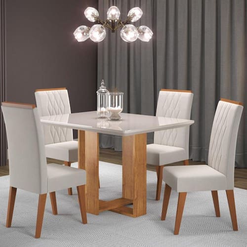 O Conjunto Sala de Jantar Caxias com cadeiras Cristal une beleza, sofisticação e facilidade. Contendo mesa retangular com pés em detalhes cruzados, além de 4 cadeiras com lindos detalhes no encosto, oferece conforto e torna mais agradáveis os momentos de refeição. Aproveite para inovar sua sala!
