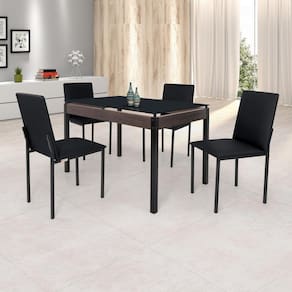 O conjunto de mesa Dubai, é o conjunto ideal para sua cozinha ou sala de jantar, na cor Preto Fosco e com tampo de vidro preto de 1,20M X 0,75M, possui 4 cadeiras com desing modero e anatômico, estofado em courino com toque macio que imita o linho. Acabamento da Cadeira/Banco: Pintura Epóxi Acabamento da Mesa: Pintura Epóxi Almofada do assento: Removível Altura do Conjunto: Ambiente Principal: Cozinha Apoio para Braços Estofado: Cadeira/Banco estofada: Sim Cadeira/Banco suporta até: 100 Complexidade da Montagem: Baixa: pode ser montado por uma pessoa sozinha Cor: Preto/Linho Preto Cor do Produto: Preto/Linho Preto Enchimento do Assento: Espuma D-20 Enchimento do Encosto: Espuma D-16 Escala de Brilho: Fosco Espessura do Tampo: 8 Estrutura do Assento: Estrutura de madeira pinus compensados, porca agarra metálicas, espuma e courino sintético 20mm Estrutura do Encosto: Estrutura de madeira pinus compensados, porca agarra metálicas, espuma e courino sintético 20mm Informações Complementares: Itens Inclusos: 1 Mesa, 4 Cadeiras, Kit Ferragens e Manual de Montagem Linha ou Coleção: Clássica Manual de Especificação Técnica: Manual de Montagem e Instalação: https://cdn2.madeiramadeira.com.br/atributo/moveis-ciplafe/1204138-manual-base-e-cadeira.pdf Material da Base da Mesa: Aço Material da Estrutura da Cadeira: Aço Carbono Medida da Base (A x L x P): Medida da Cadeira/Banco (A x L x P): 92x41x55cm Medida da Mesa (A x L x P): 77x75x120cm Medida do Canto Alemão (A x L x P): Medida do Suporte Giratório (L x C x E): Medida do Tampo (L x C x E): 75x120x0,8cm Mesa suporta até: 10 Necessita Montagem: Sim Origem do Produto: Nacional Peso da Cadeira/Banco: 5.92 Peso da Mesa: 28.71 Possui Apoio para Braços: Não Possui Apoio Para os Pés: Não Possui Suporte Giratório: Não Recomendações de Uso, Manutenção e Limpeza: Limpar com pano levemente umedecido. Não usar produtos abrasivos que possam danificar a superfície do móvel. Revestimento da Cadeira/Banco: Couro Ecológico Sistema de Montagem: Parafusos Tipo de Madeira Maciça da Base da Mesa: Tipo de Madeira Maciça do Tampo: Vidro Temperado: Não